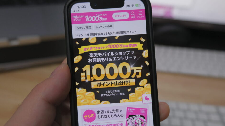 このキャンペーンは2026年2月28日までの期間限定で開催中です。楽天モバイルの店舗に来店してお見積もり&エントリーするだけで総額1,000万ポイント山分けキャンペーンの対象になるのでぜひご検討ください。