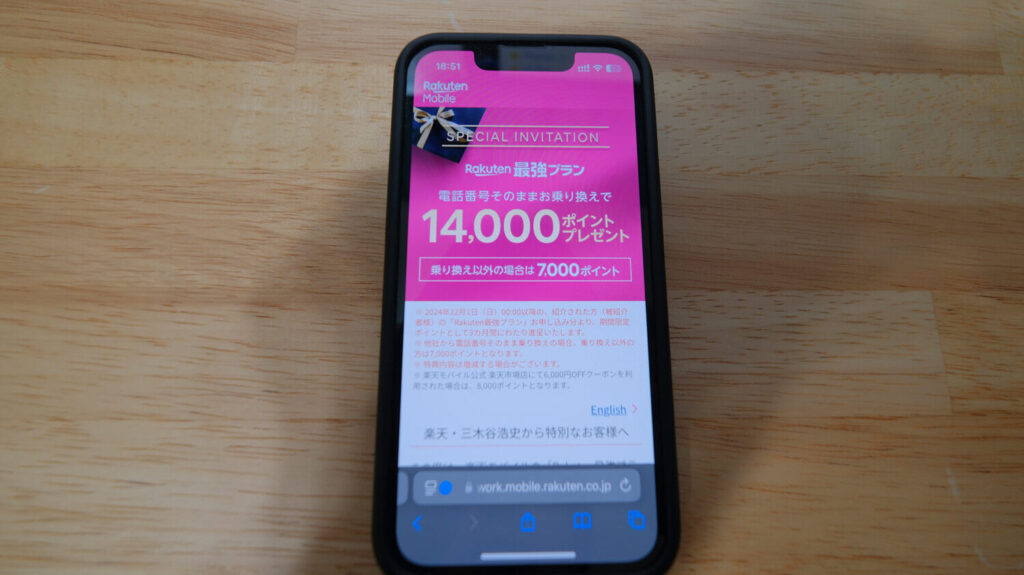 他社から乗り換え(MNP)で14,000ポイント、それ以外でも11,000ポイントもらえる楽天モバイル紹介キャンペーンがおすすめです。実はこれ再契約も対象になります!