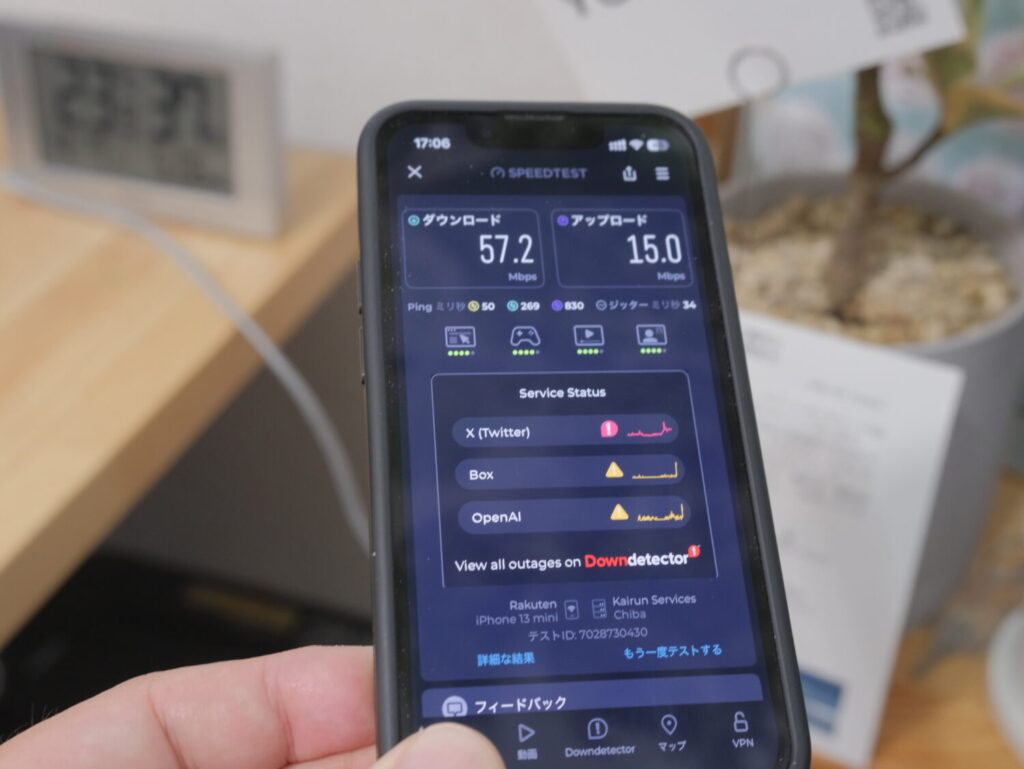 ギリギリ5Gエリアという厳し目の条件で回線速度を測定しましたが、5Gに対応しているだけあってダウンロード・アップロード共に高速です。
